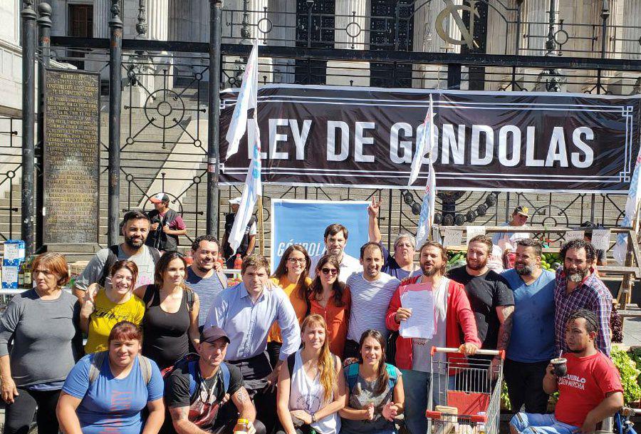 Con un gondolazo frente al Congreso, Juan Grabois presentó en Diputados un proyecto para evitar que las grandes empresas impongan precios abusivos en los supermercados. La propuesta busca que estén obligados a ofrecer productos de cinco proveedores por rubro –como mínimo–, para que haya competencia. A su vez, plantea que ningún grupo empresario ocupe más del 30 por ciento del espacio por góndola y que se garantice un piso a la producción nacional. El proyecto original fue elaborado por Fera, que el viernes anterior plantó a Juan Grabois y presentó su proyecto junto a Elisa Carrió, y retomado por el Frente Patria Grande, que agregó un artículo para que el 5 por ciento de las góndolas sea destinado a la venta de productos de las cooperativas de trabajo.